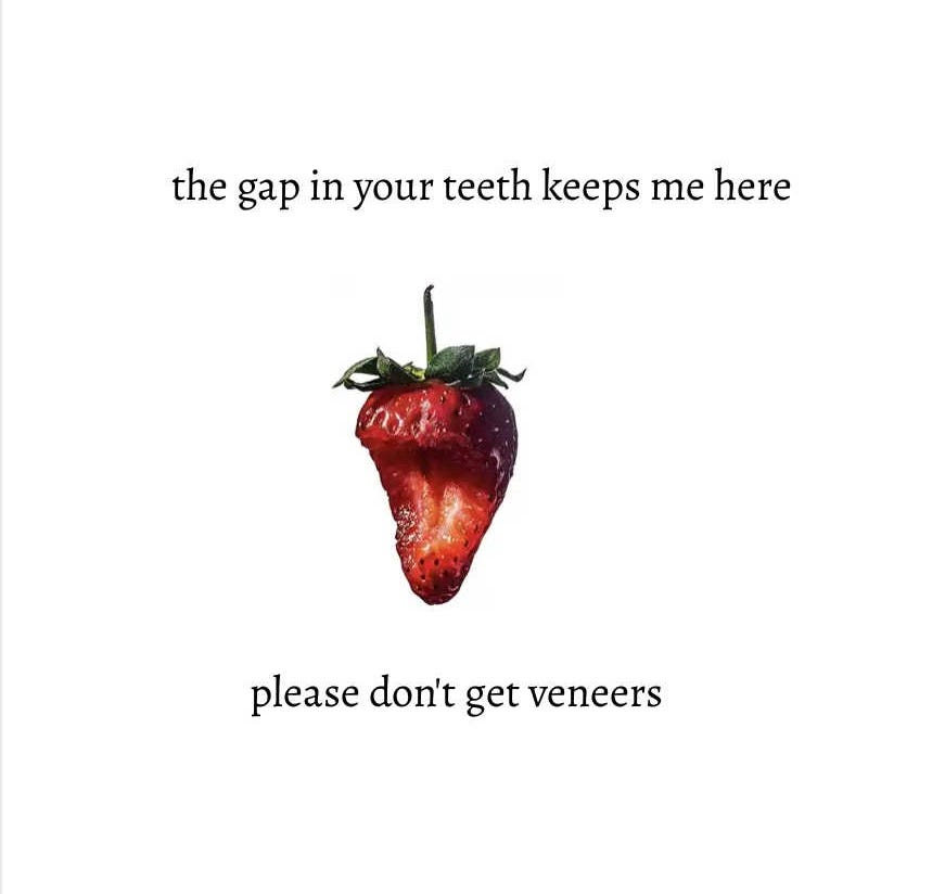 The epidemic of people getting their sweet uneven teeth shaved down and replaced with veneers comes to mind, and I just have to say some of these things, okay.